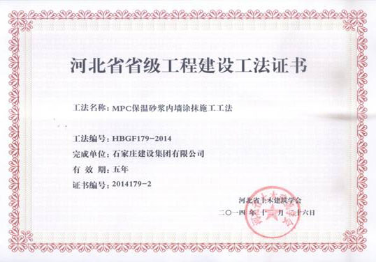 河北省省組工程建設(shè)工法證書